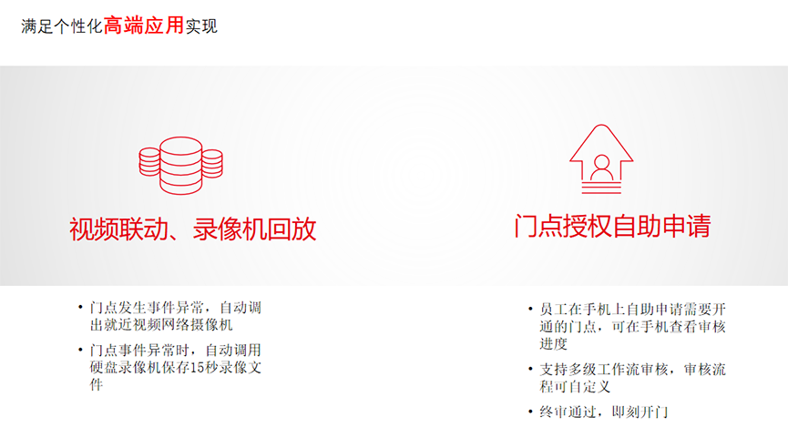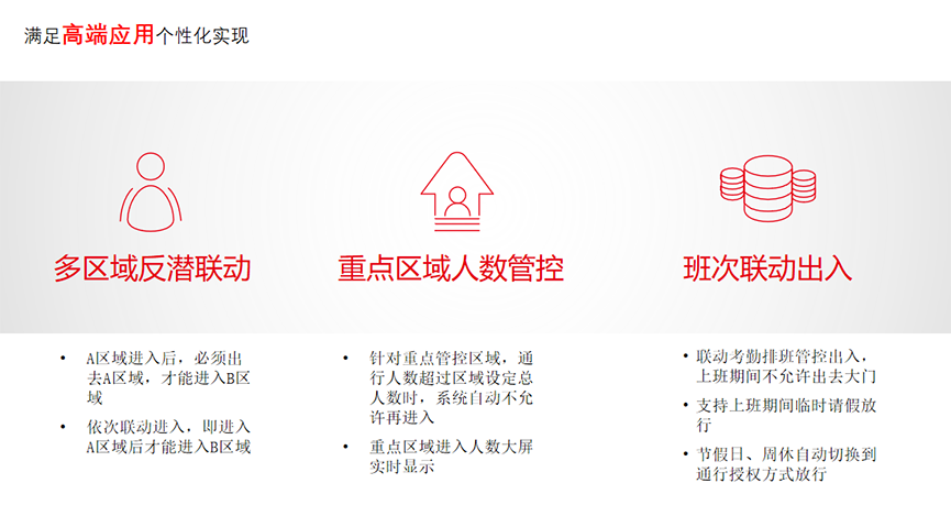 協(xié)助企業(yè)將人(職員、訪客)、車、物出入安全問題納入到系統(tǒng)中進(jìn)行有效管控,監(jiān)測發(fā)生異常時,第一時間通過彈窗報警、語音報警、郵件提醒、手機(jī)信息推送等多種方式知會相關(guān)管理人員,提前預(yù)警防范事故。